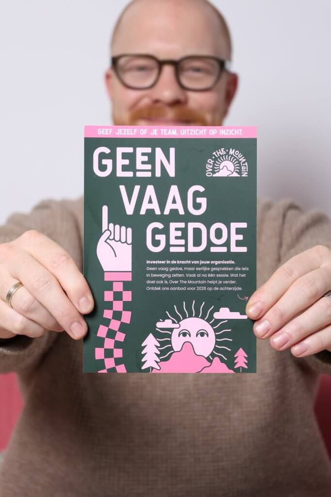 Voor coachingsplatform Over The Mountain mochten wij creatief losgaan. Samen met oprichter Remco doken we in zijn hoofd om zijn visie, stijl en verhaal te vertalen naar een merk dat klopt van A tot Z.